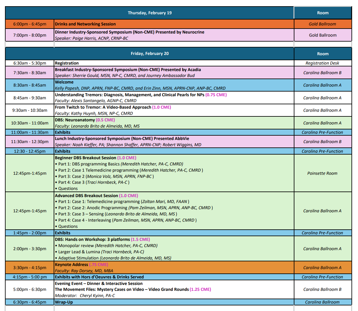 - APP faculty led presentations by peer leaders across the country on best practices for managing movement disorders